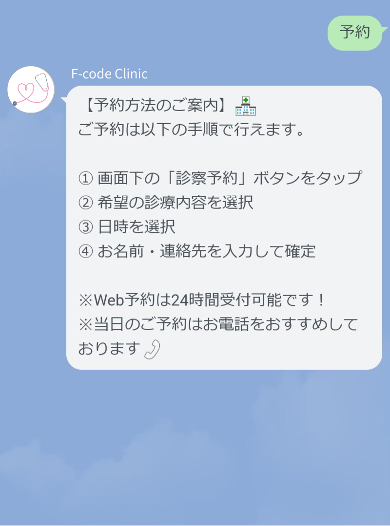 自動応答メッセージを活用することで、顧客の問い合わせに24時間対応が可能になり、患者の利便性向上とクリニックの業務効率化につながります。