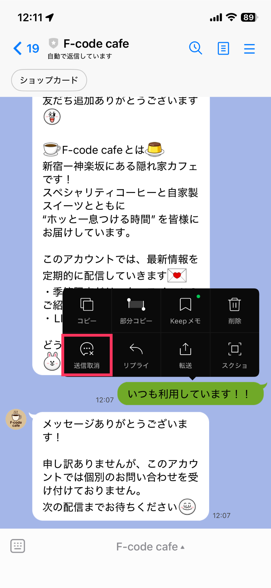送信取り消しは相手の画面からも消える「なかったことにする」機能