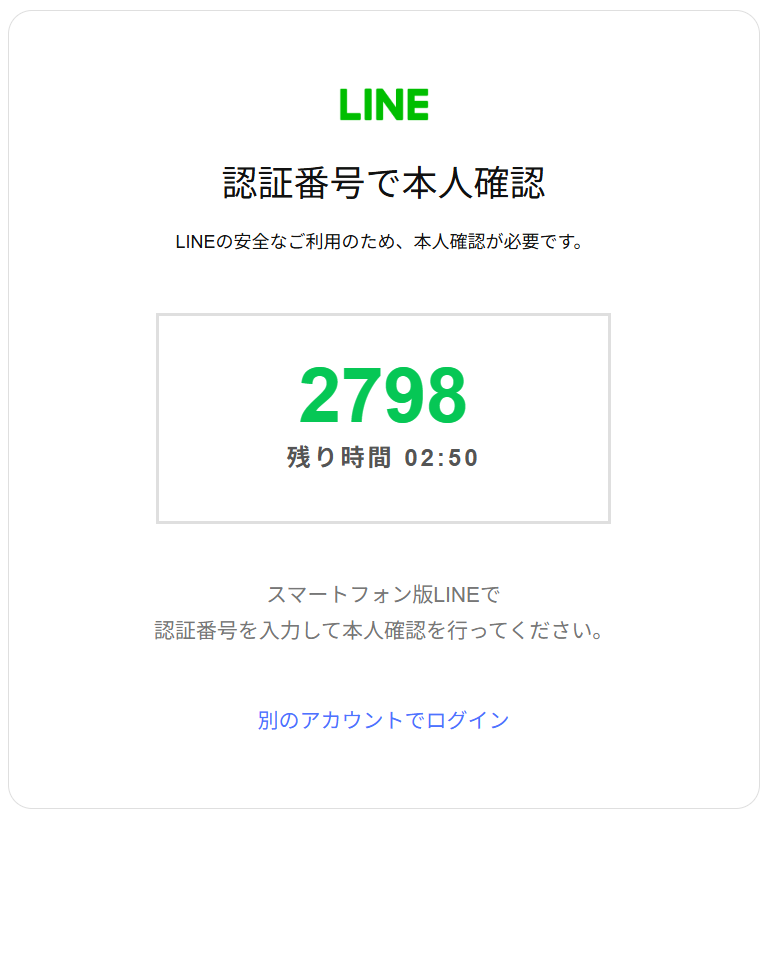 あらかじめログイン済みのLINEアプリに認証番号を入力して、本人確認が完了するとログインできます。