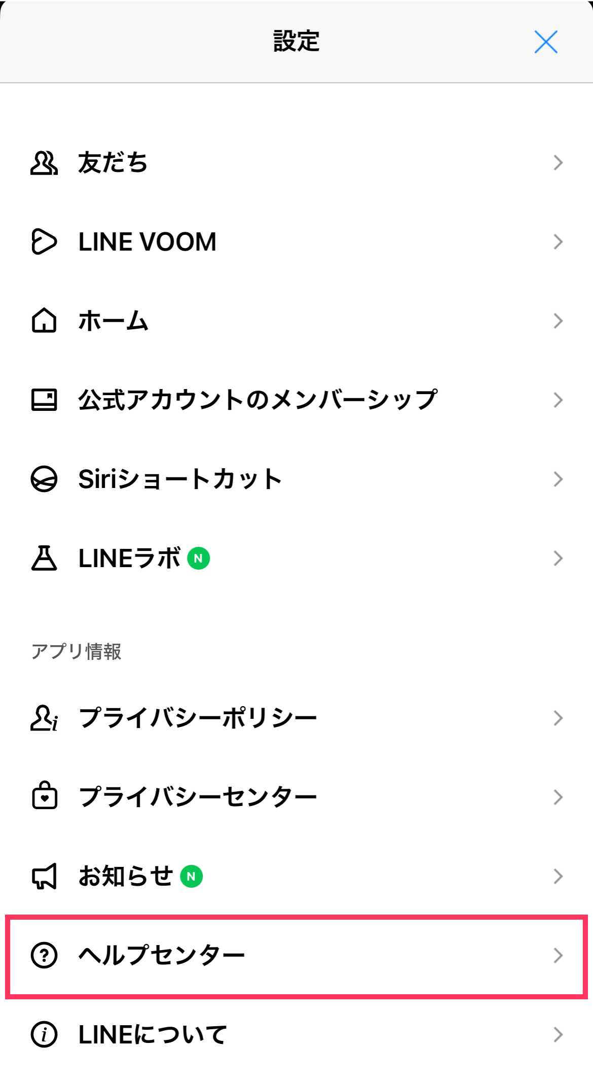 SETP②:ページ下部にある「ヘルプセンター」をタップ