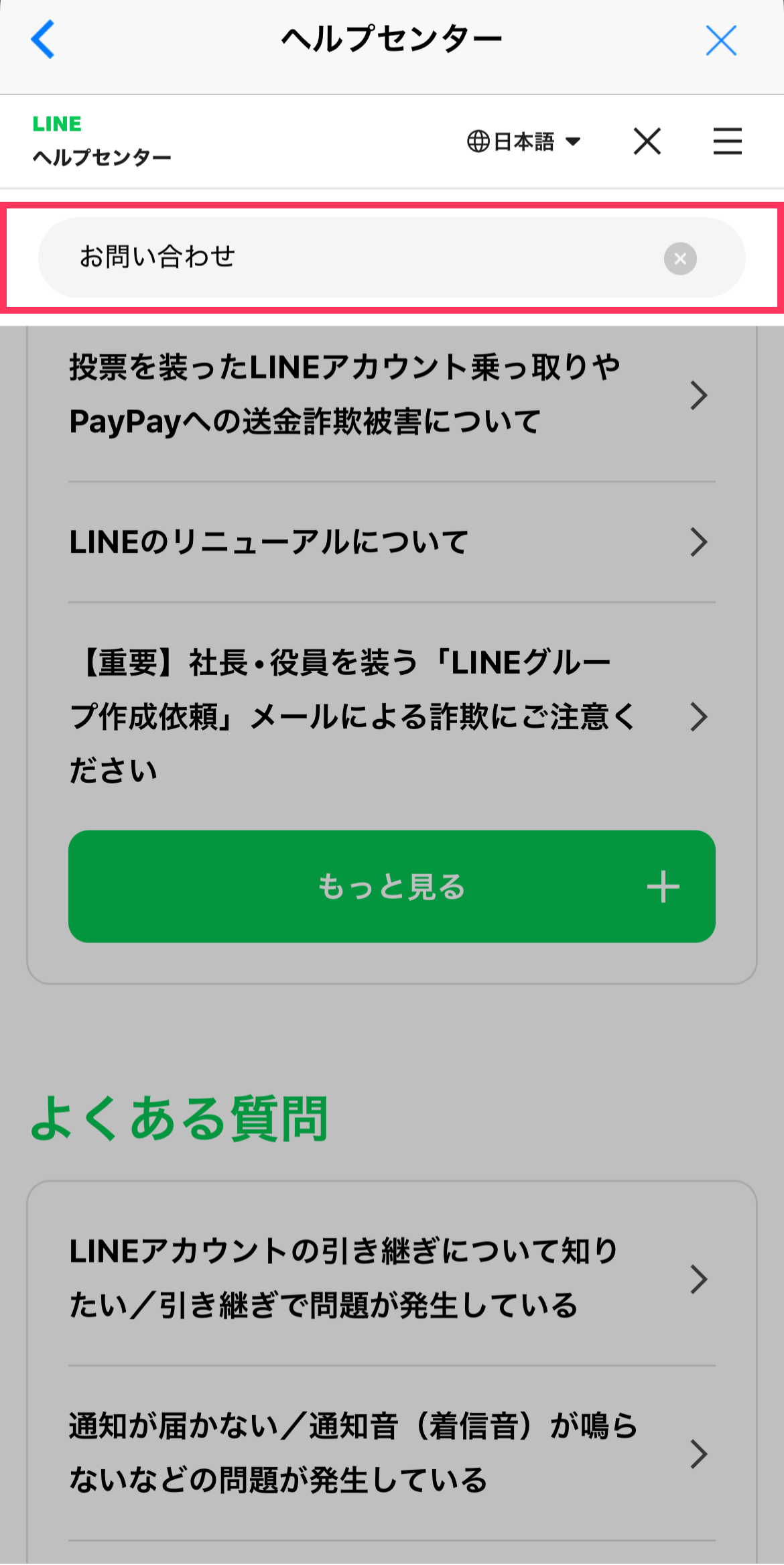 LINEの問い合わせ窓口は「お問い合わせフォーム」からのみ