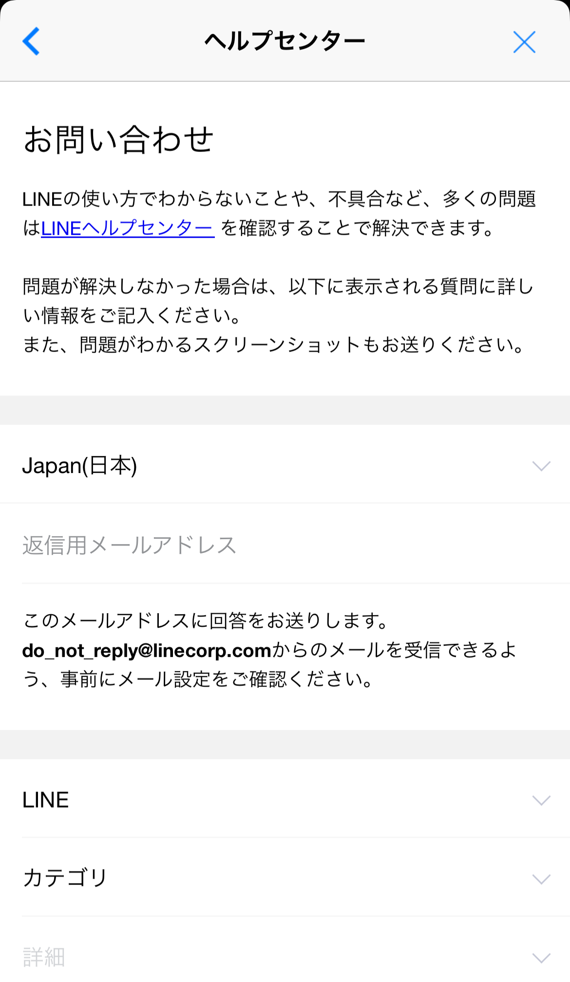 LINEカスタマーサポートは、お問い合わせフォームのみで受け付けています。