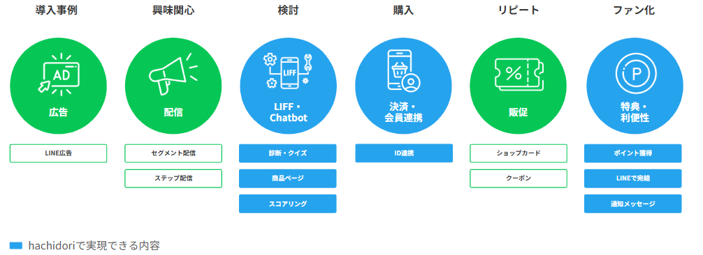LINE公式アカウントの基本機能だけでは物足りない場合、外部の拡張ツールを活用する方法があります。エフ・コードが提供するLINEマーケティング支援ツール「hachidori」もその一つです。