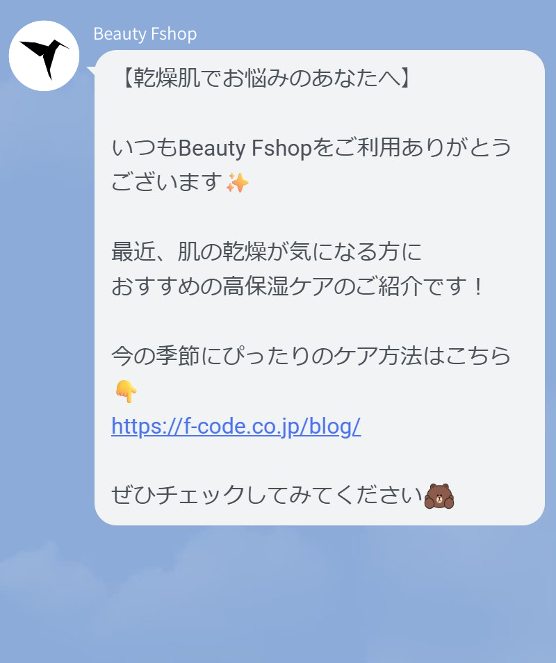 内容「新商品が発売されました!」「乾燥肌でお悩みのあなたへ、